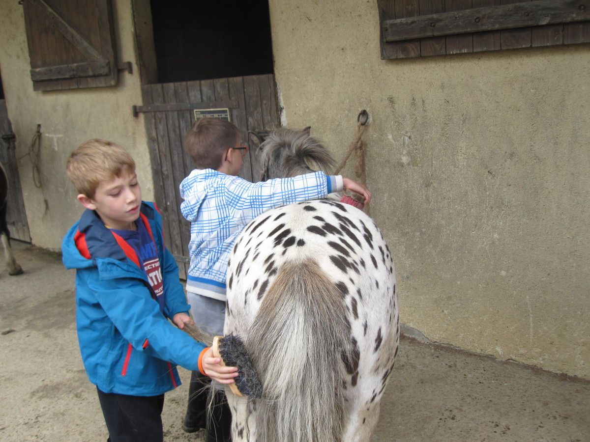 Au programme de cette 6ème séance : visite de la ferme pédagogique et balade aux abords du centre équestre (le terrain étant détrempé, nous n'avons pu aller dans les bois comme prévu).